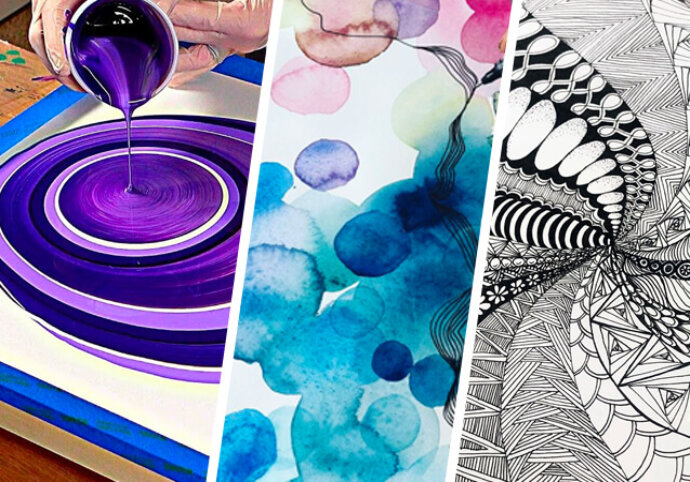 In this camp, we will make a different artwork each day, experimenting with today’s most popular art trends. These include pop art, pour painting, watercolor abstraction, zentangle and more.